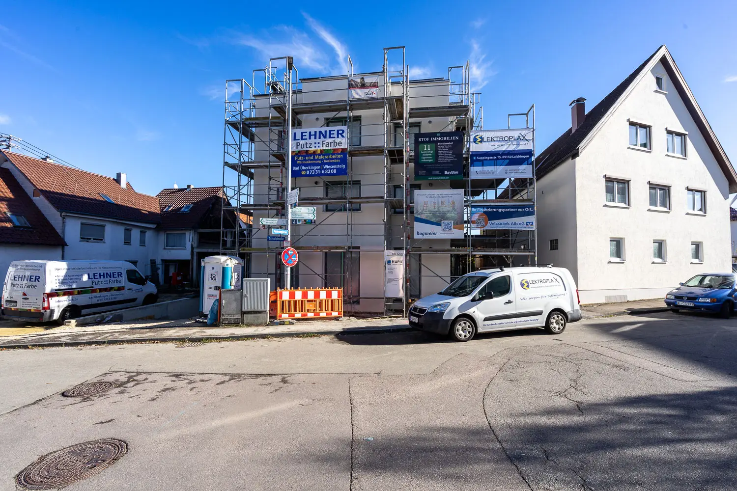 In zentraler Lage von Laichingen entsteht bis zum Frühjahr 2026 ein modernes Neubauprojekt mit insgesamt elf hochwertigen Wohneinheiten und zehn Tiefgaragenstellplätzen. Das Gebäude wird nach dem energieeffizienten KfW-40-Standard errichtet und verbindet zeitgemäße Architektur mit nachhaltiger Bauweise und hohem Wohnkomfort. Die durchdachte Planung und die Verwendung moderner Baumaterialien schaffen ein Wohnensemble, das sowohl ästhetisch als auch funktional überzeugt.