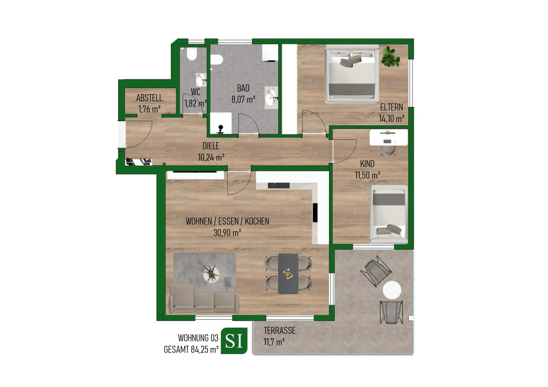 Die Wohnungen verfügen über zwei bis drei Zimmer und bieten Grundrisse, die auf die Bedürfnisse unterschiedlicher Zielgruppen – von Singles bis zu kleinen Familien – abgestimmt sind. Großzügige Fensterflächen sorgen für helle, lichtdurchflutete Räume, während Balkone und Terrassen den Wohnraum ins Freie erweitern. Ein besonderes Highlight stellen die Penthouse-Wohnungen dar, die mit einer modernen Smart-Home-Ausstattung, großzügigen Dachterrassen und einer gehobenen Innenausstattung ein exklusives Wohnerlebnis bieten.