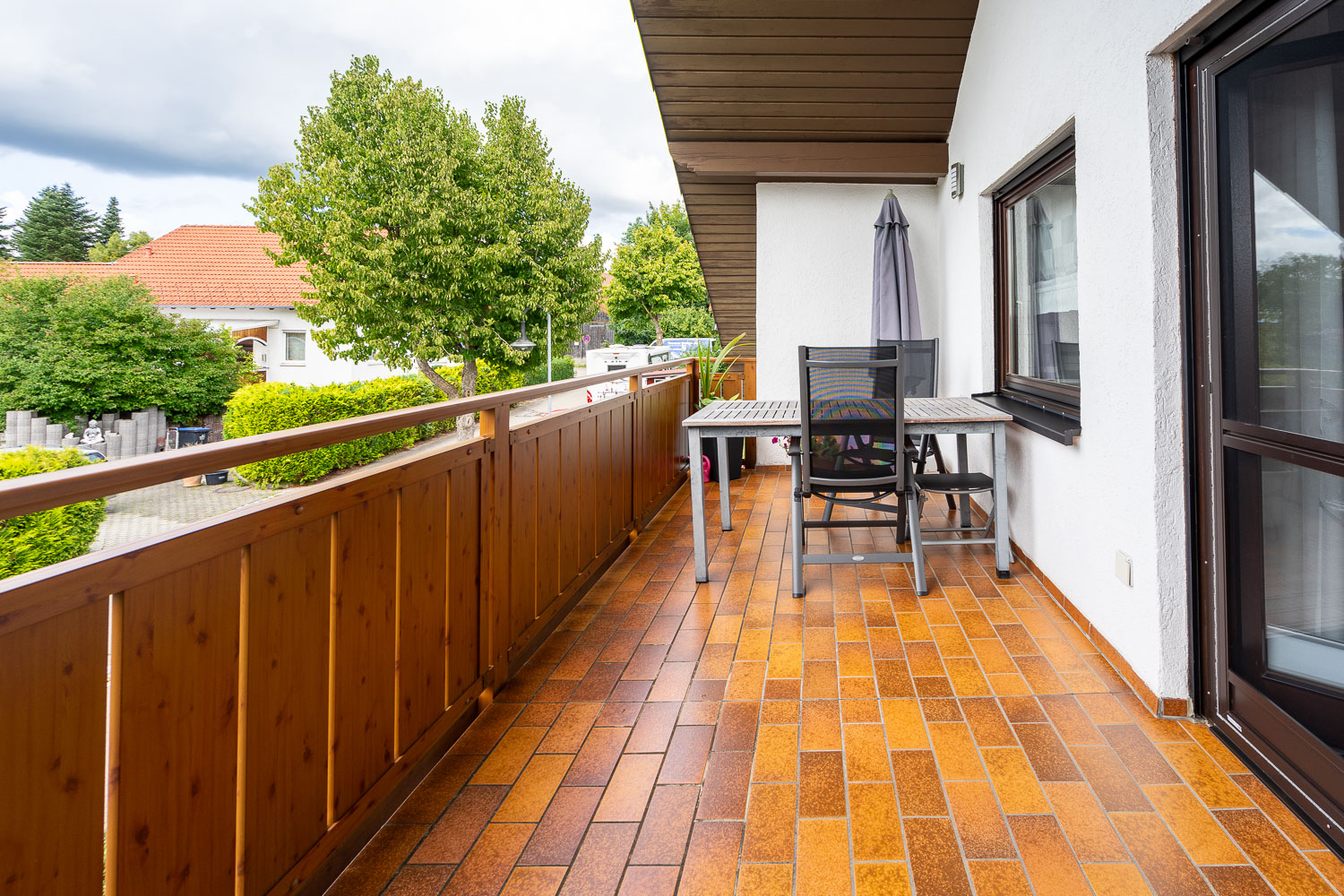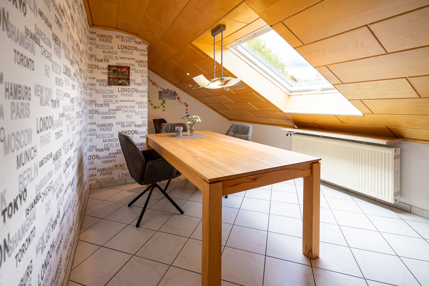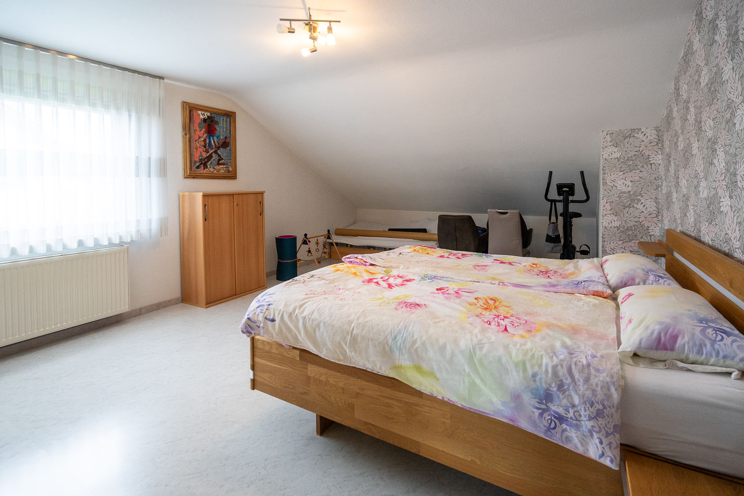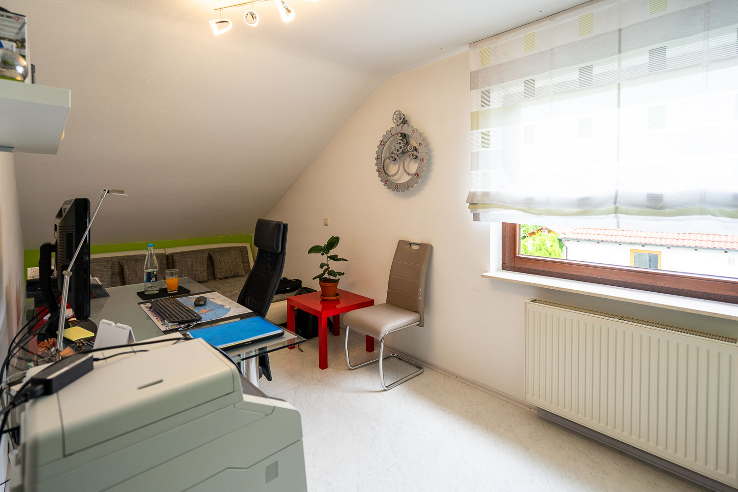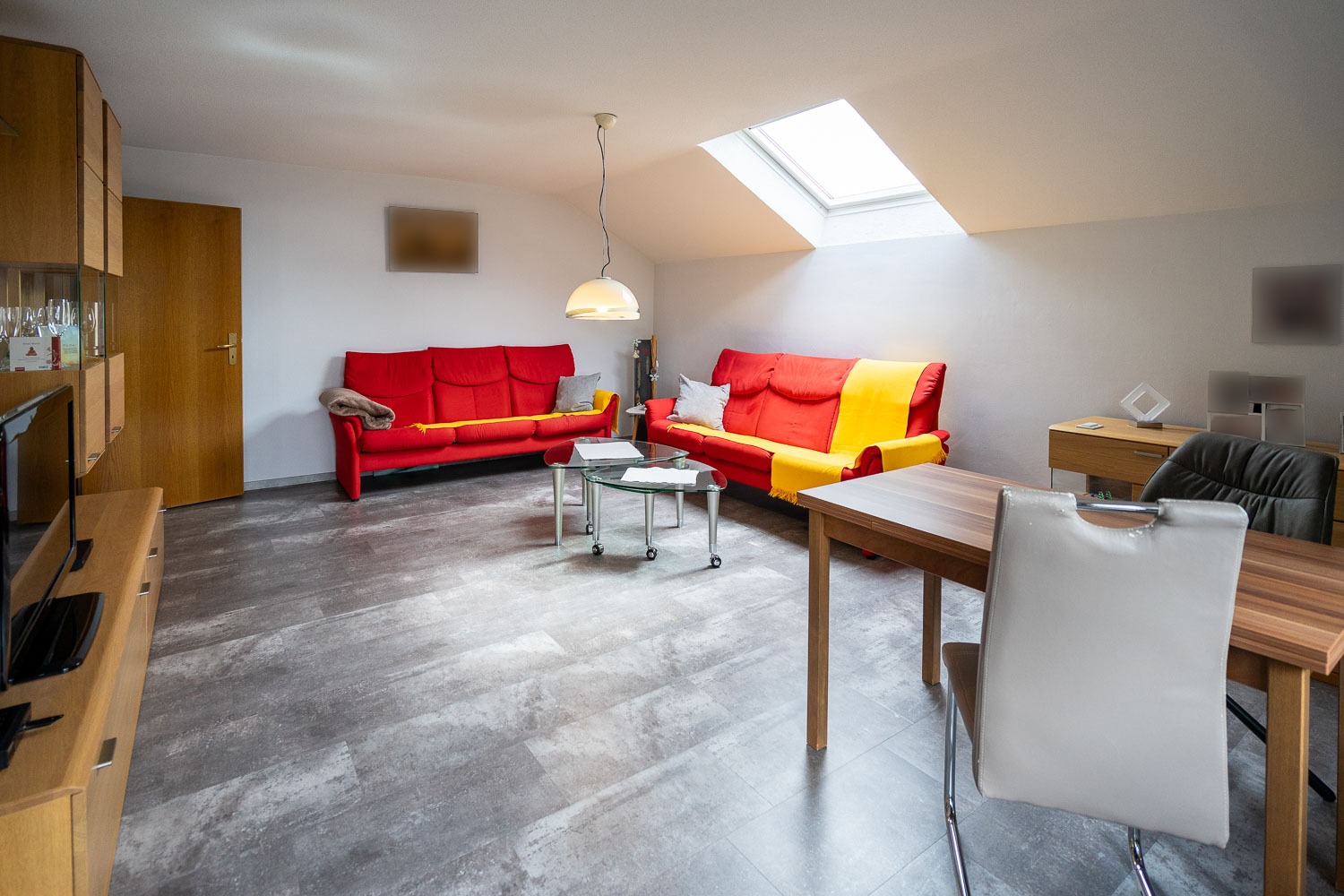 Im Dachgeschoss befindet sich eine 5-Zimmer-Wohnung mit ca. 110 m² Wohnfläche, die derzeit für 450,- € kalt/Monat vermietet ist – eine perfekte Möglichkeit, Mieteinnahmen zu erzielen. Vom Wohnbereich aus gelangen Sie auf den Westen ausgeichteten Balkon, der zum Verweilen einlädt.
