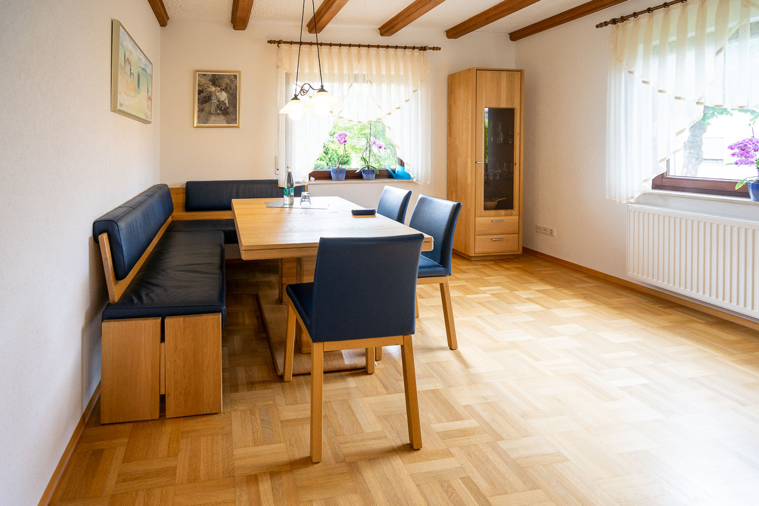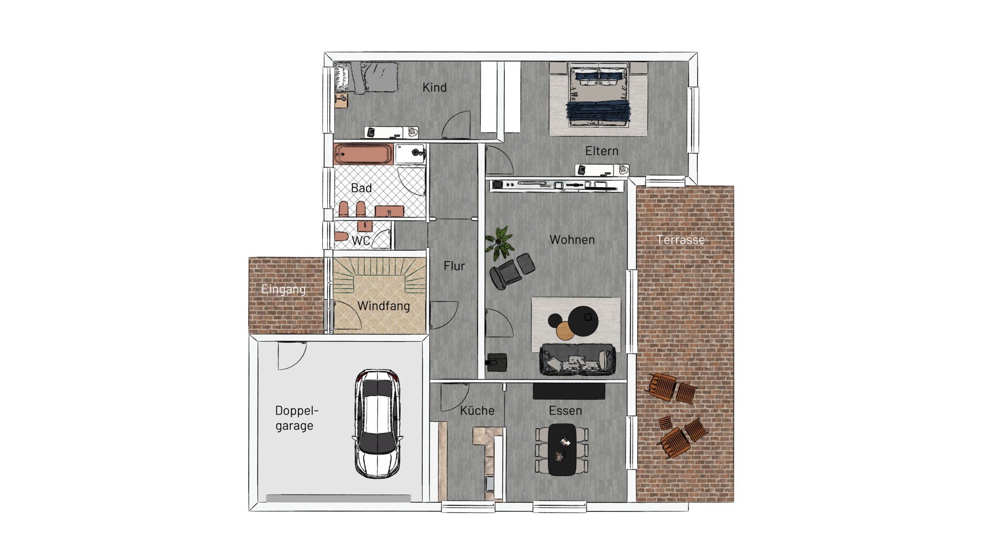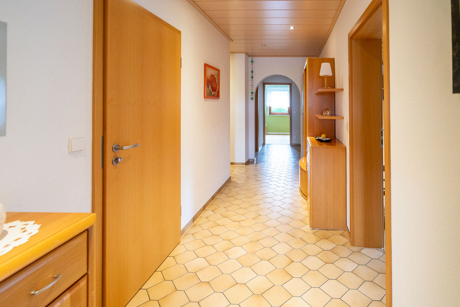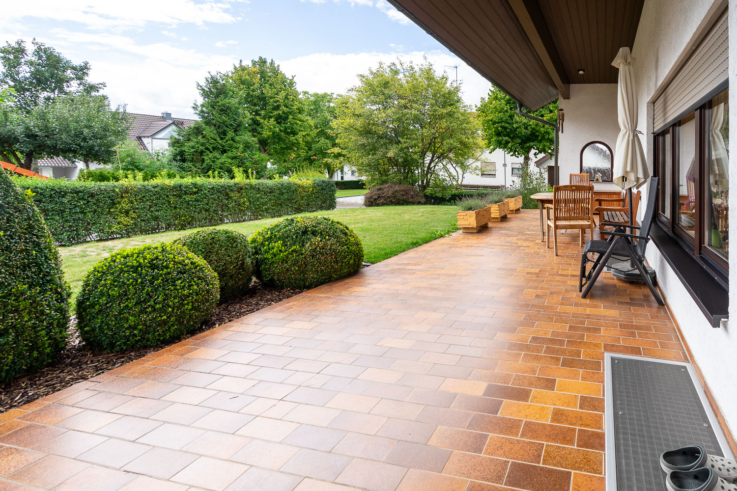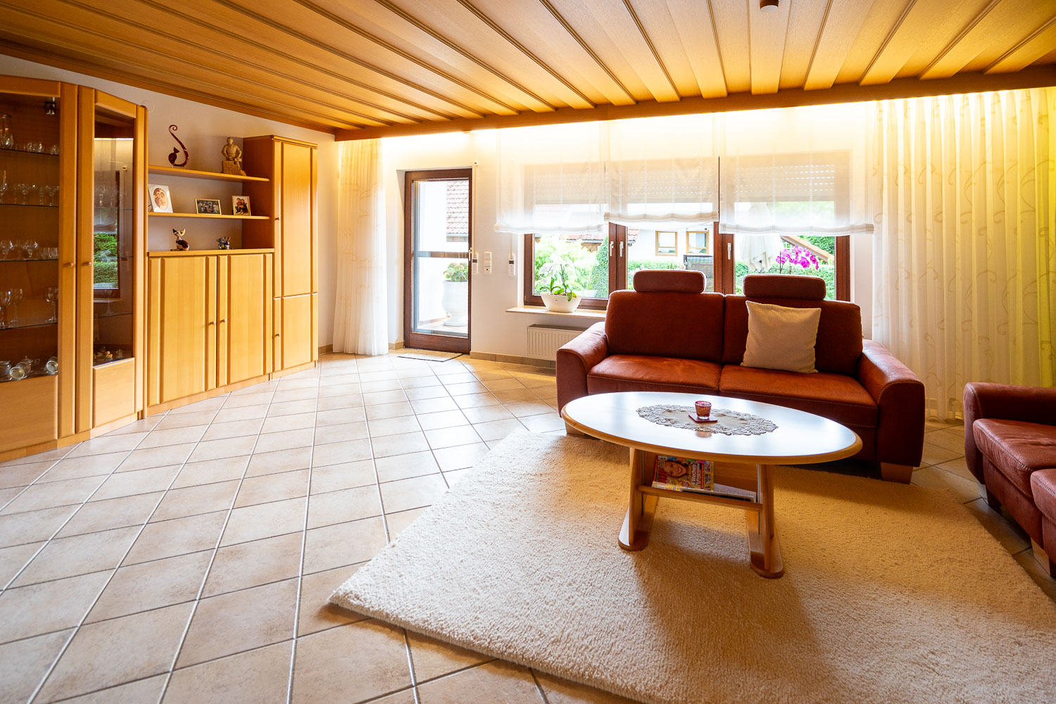 Das Erdgeschoss bietet eine 4-Zimmer-Wohnung (ca. 140 m² Wohnfläche), die durch ihre Helligkeit und großzügige Raumaufteilung besticht. Der Grundriss gliedert sich in eine separate Küche, ein Essbereich, eine sep. Toilette, zwei Kinderzimmer, ein Schlafzimmer und einen geräumigen Wohnbereich. Vom Wohnbereich aus besteht Zugang zur nach Süden ausgerichteten Terrasse und ein den traumhaft angelegten Garten.