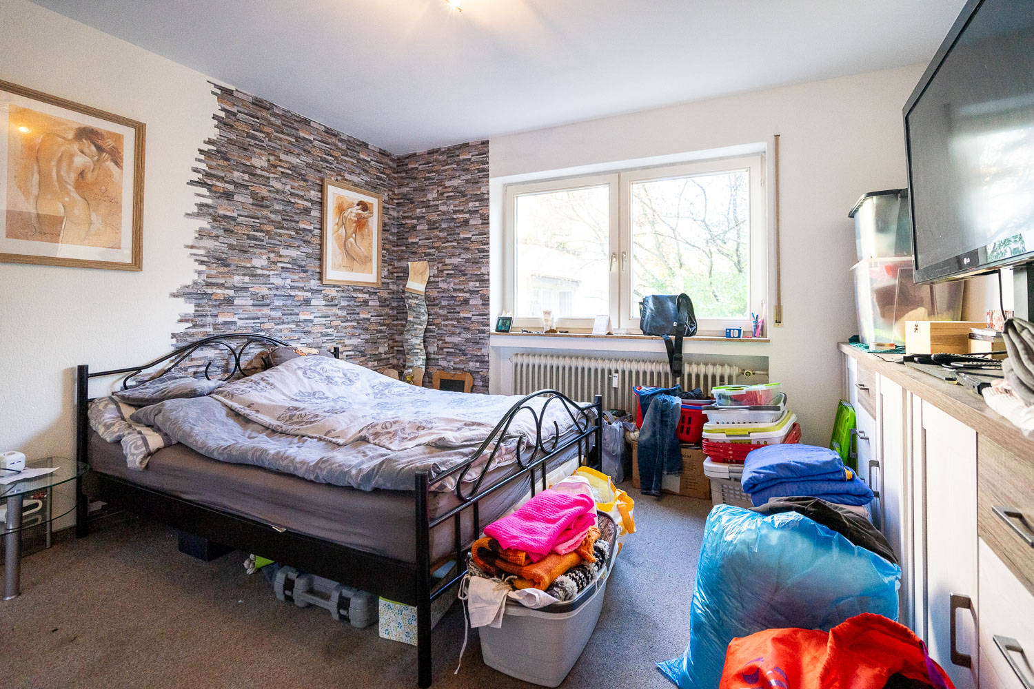 Das Elternschlafzimmer bietet ausreichend Platz für ein Bett sowie einen Kleiderschrank.