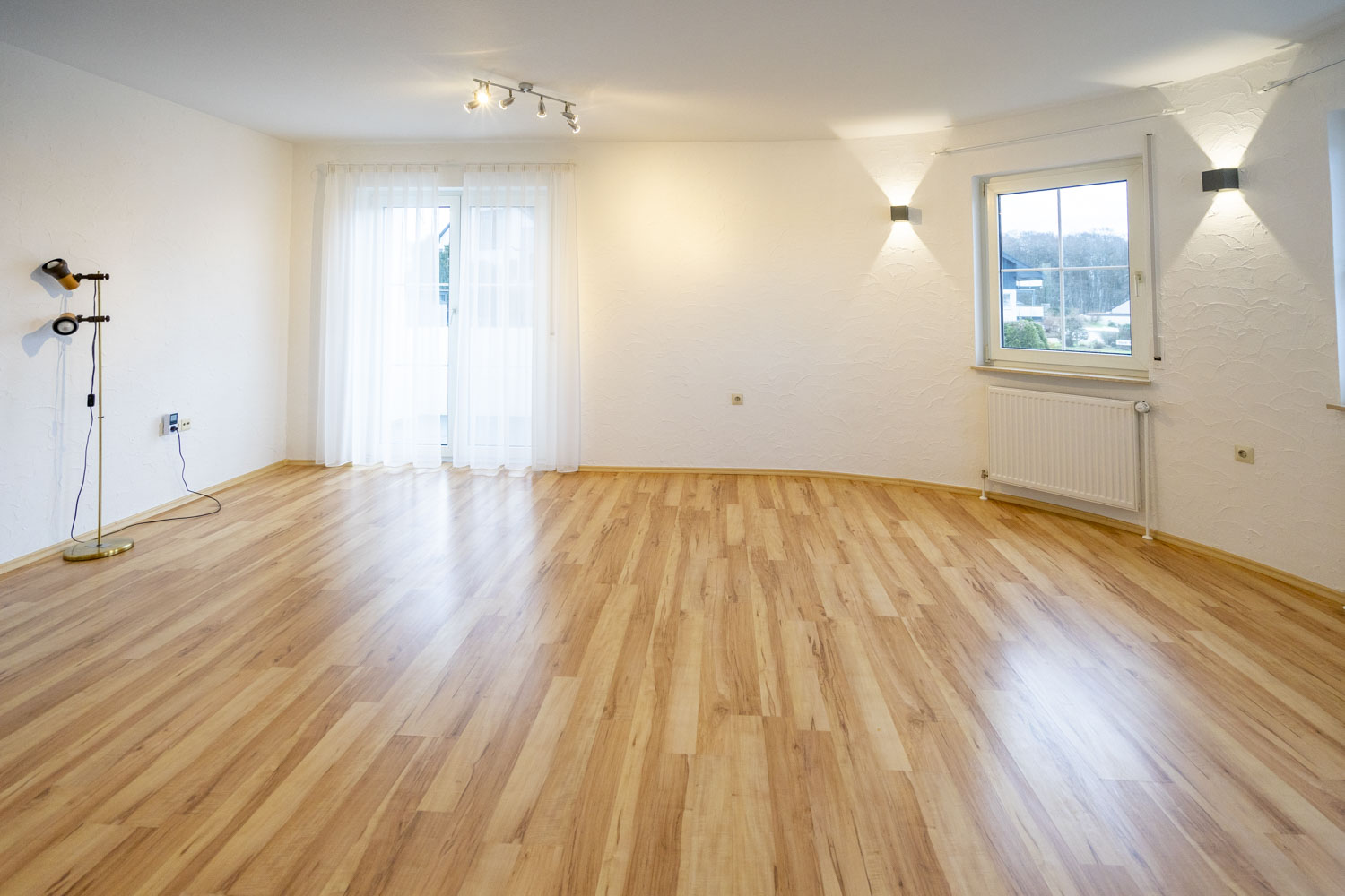 Vom Wohnbereich aus gelangen Sie zum nach Osten ausgerichteten Balkon.