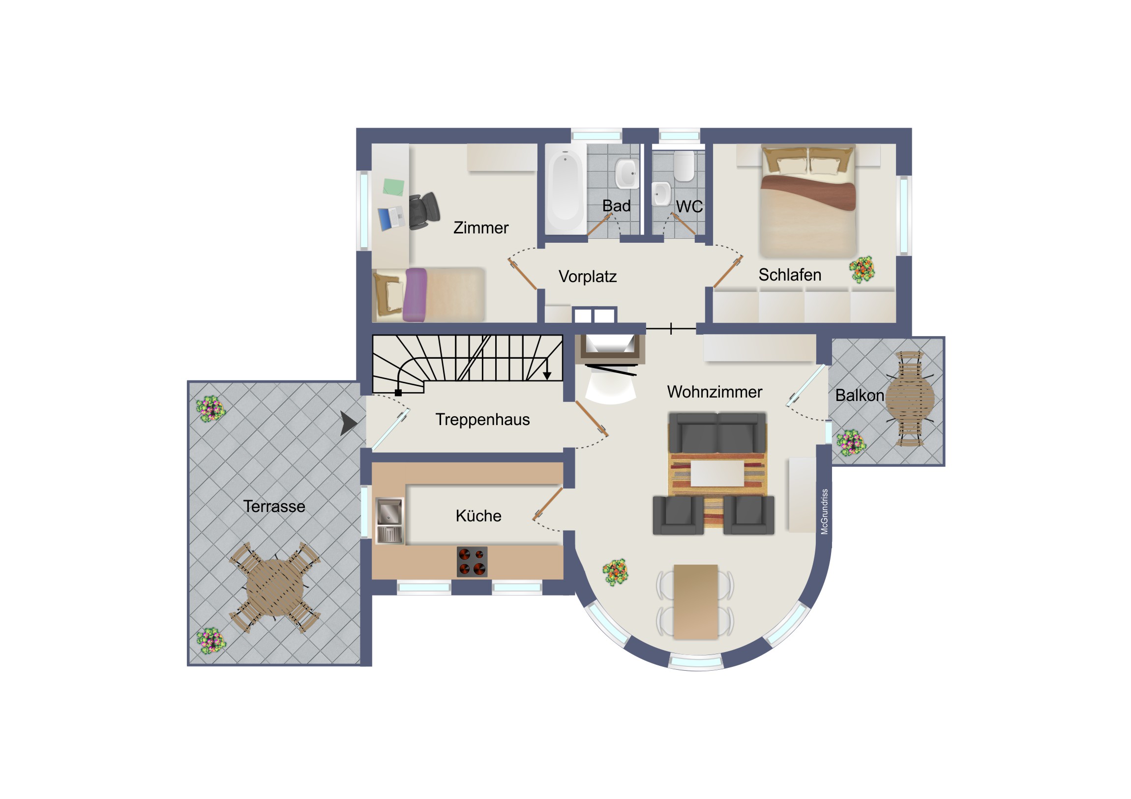Zudem besteht noch Zugang zu einer nach Westen ausgerichteten Terrase.