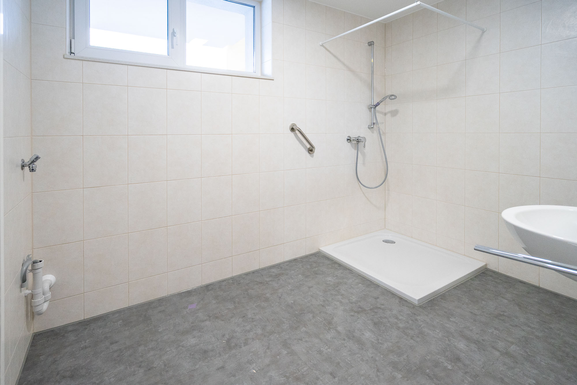 Eine Duschabtrennung wird noch angebracht.
